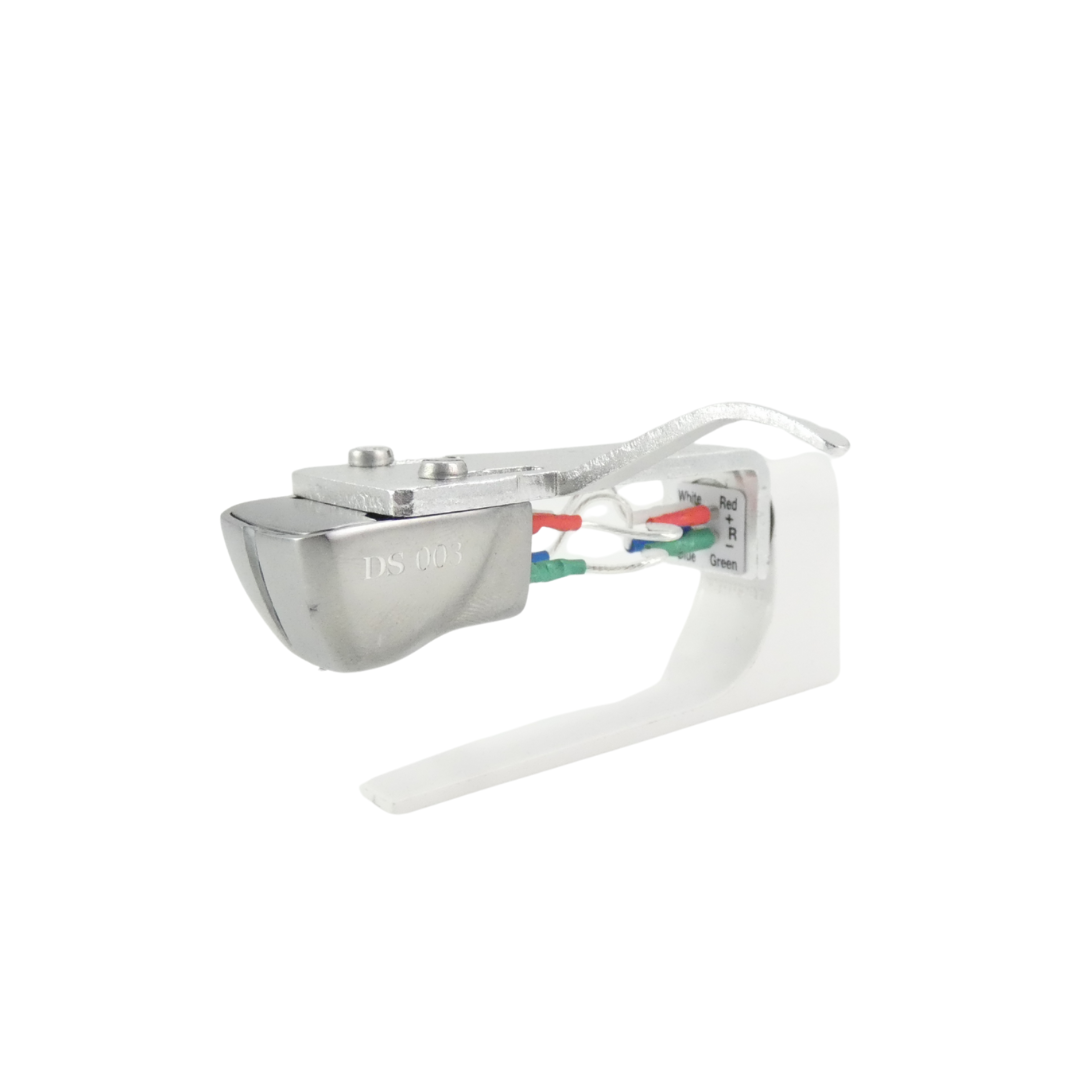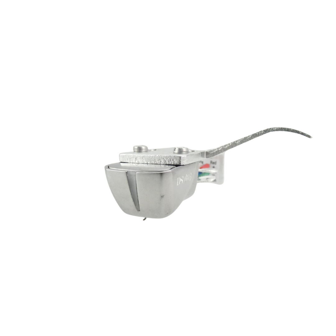 The DS Audio 003 is a third-generation optical phono cartridge that departs from traditional magnetic designs. Instead of coils or magnets, it modulates light: a miniature LED and photodetector system interact with a “shading plate” attached to the stylus to produce an analog signal. Because the nature of its output is fundamentally different, the 003 must be paired with a dedicated equalizer (sometimes called an “energizer”) — such as the 003EQ Phonostage— which provides power to the cartridge and performs the necessary equalization.Box and Manual included.